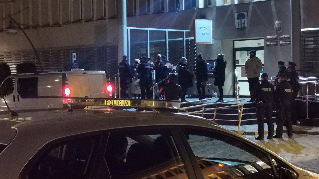 Protest początkowo zapowiadał się bardzo spokojnie. Emocje sięgnęły zenitu gdy funkcjonariusze policji wylegitymowali zebrane pod urzędem osoby. Jedna z kobiet nie chciała podać swoich dany i została zatrzymana przez policjantów. Uczestnicy protestu wyruszyli pod komendę miejską policji, gdzie kontynuowali okrzyki „Nigdy nie będziesz szła sama”.