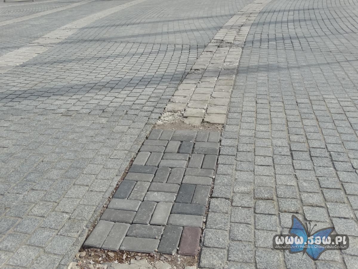 Byle jaka kostka uzupełnia nawierzchnie rynku? Naprawa bruku w tym miejscu coraz bardziej odchodzi od zachowania jakiejkolwiek estetyki.