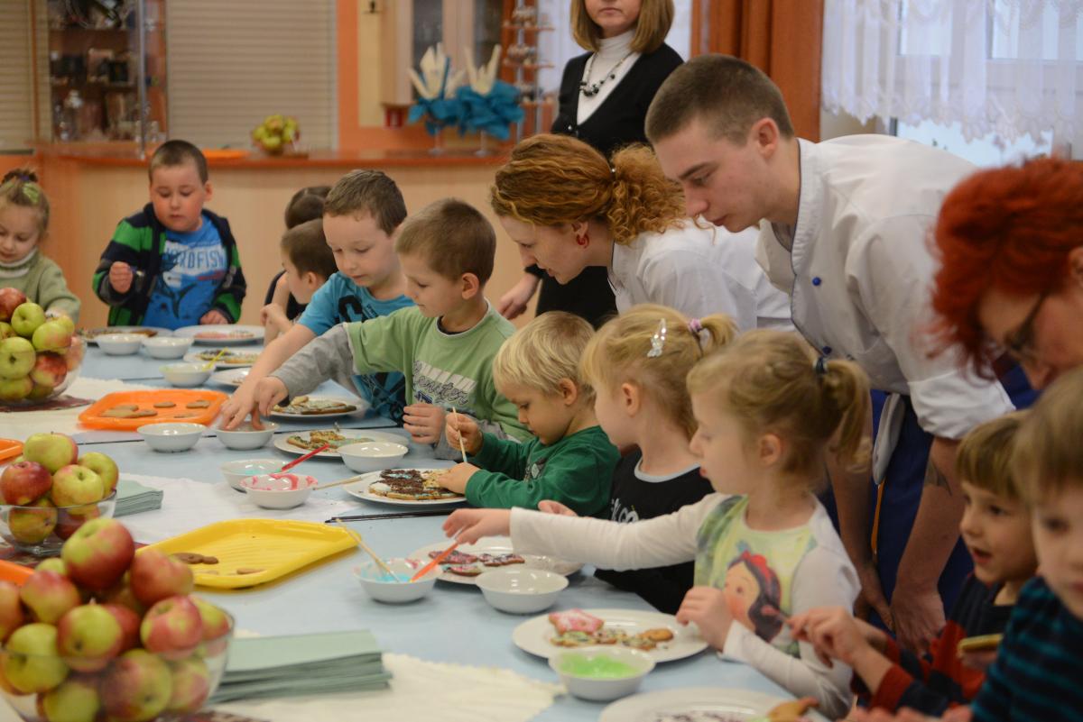 Dzieci z Przedszkola Miejskiego nr 12 z Oddziałami Integracyjnymi odwiedziły w piątek Zespół Szkół Ponadgimnazjalnych nr 4. Wraz z uczniami szkoły przygotowywały świąteczne pierniki. Wypiekiem pierników zajęli się uczniowie szkoły, a przyozdabianiem ich lukrem i innymi słodkościami przedszkolaki. Zabawy było co niemiara, a na smakowicie wyglądających piernikach pojawiły się najrozmaitsze wzory.