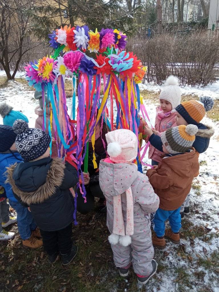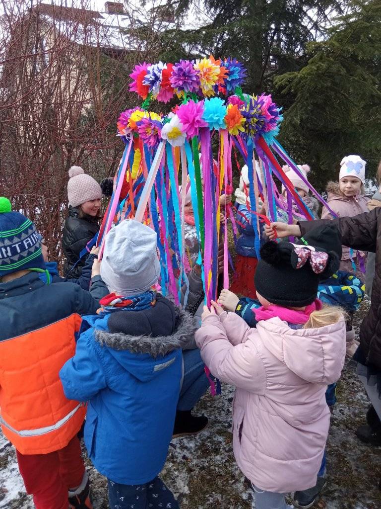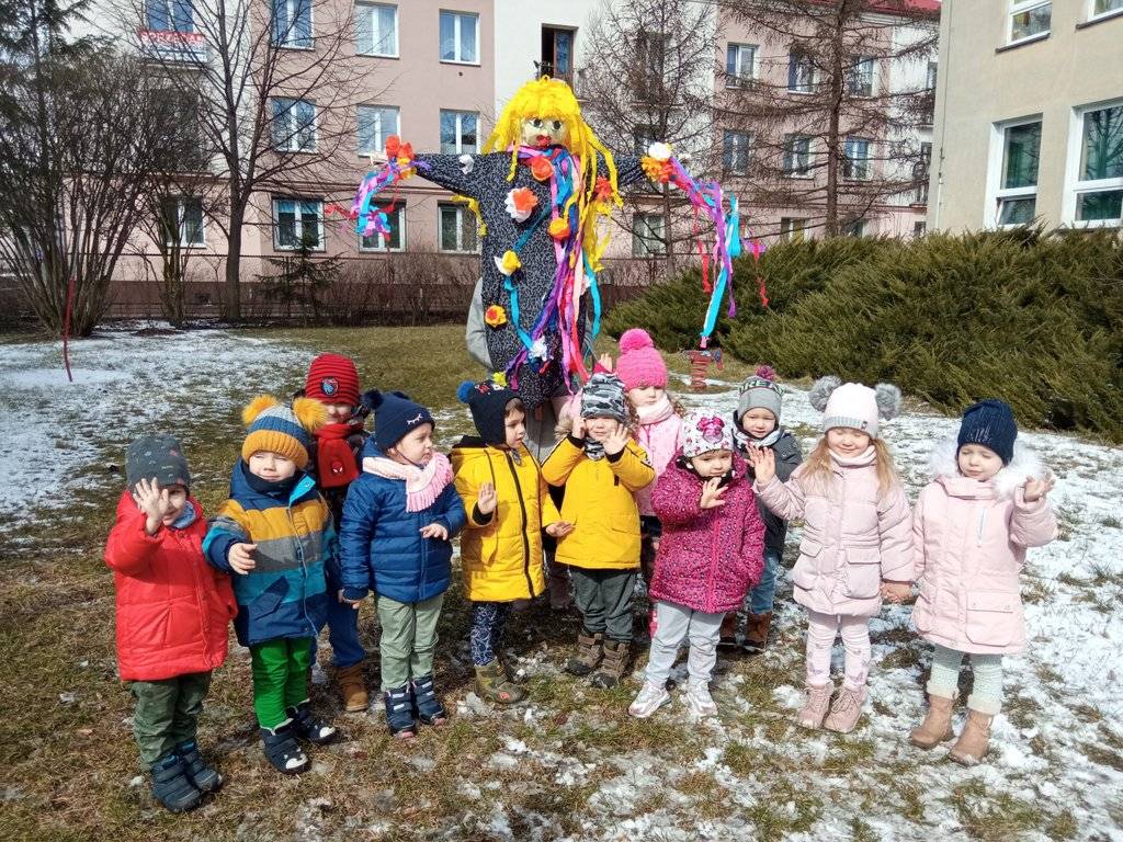Aby tradycji stało się zadość, najpierw pod czujnym okiem wychowawczyń wyszykowały na ostatni spacer Marzannę a następnie zabrały się do strojenia wiosennego gaika. W ogrodzie przedszkolnym pożegnały zimę a wiośnie zaśpiewały piękne piosenki aby zachęcić ją do szybszego przyjścia. Teraz już tylko zostało wypatrywanie oznak, że wiosna jest tuż, tuż….