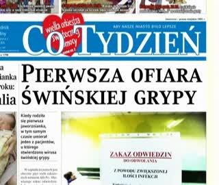 Świńska grypa atakuje! Na pierwszej stronie najnowszego Co Tydzień informacja o stwierdzonych w Jaworznie przypadkach zakażenia wirusem AH1N1. Jedna osoba zmarła. Chorzy są izolowani, a w szpitalu obowiązuje zakaz odwiedzin.