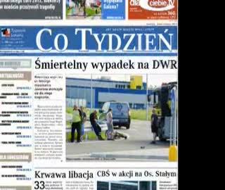 Śmiertelny wypadek na DWR – to artykuł z pierwszej strony najnowszego wydania gazety Co Tydzień. 61-letni rowerzysta zginał pod kołami samochodu ciężarowego. Na frontowej stronie znajdziemy także doniesienia o akcji Centralnego Biura Śledczego w Jaworznie i libacji alkoholowej zakończonej ranieniem nożem jednego z jej uczestników.