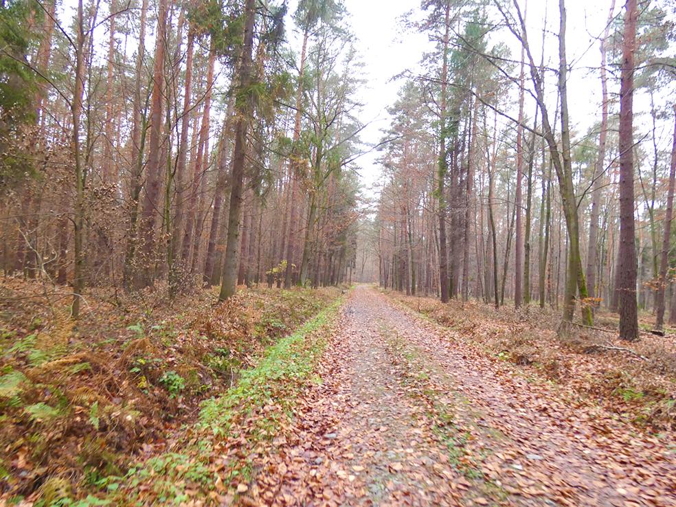 Droga prowadzi wprost na skraj lasu, który na papierowych mapach jest podpisana jako Ameryka. Trudno powiedzieć skąd taka nazwa. Na wstępie zauważyliśmy, że tutaj botanicznie szału nie ma. Tak jak to opowiadam o lasach w bezpośrednim zasięgu naszych mediów mamy tutaj do czynienia z borem bardzo mieszanym. Znaczy się dominują sosny zwyczajne, ale z drzew liściastych wyróżnia się amerykański dąb czerwony. To był najważniejszy amerykański akcent tego terenu. Liście tego gatunku zalegają na dnie lasu, utrudniając rozwój runa. Na pniakach drzew pojawiają się mszaki. Są to takie gatunki, które można bez trudu spotkać u nas. Między innymi trafia się rokiet cyprysowy oraz płozik. Kolejne mszaki w tej okolicy to złotowłos strojny oraz żurawiec falisty. Są jeszcze paprocie takie jak orlica pospolita, nerecznica samcza, nerecznica szerokolistna oraz wietlica samcza. Idąc na zachód w osi głównej drogi, mijamy płaty buka pospolitego. Lokalnie trafiają się niskie świerki pospolite. Przy południowo-wschodnim krańcu Ameryki znajduje się drzewo z kapliczką. Pod nią posadzono kolejny amerykański akcent. To jukka karolińska, taka sama, jaką można w Jaworznie oglądać w pobliżu przystanku Centrum.