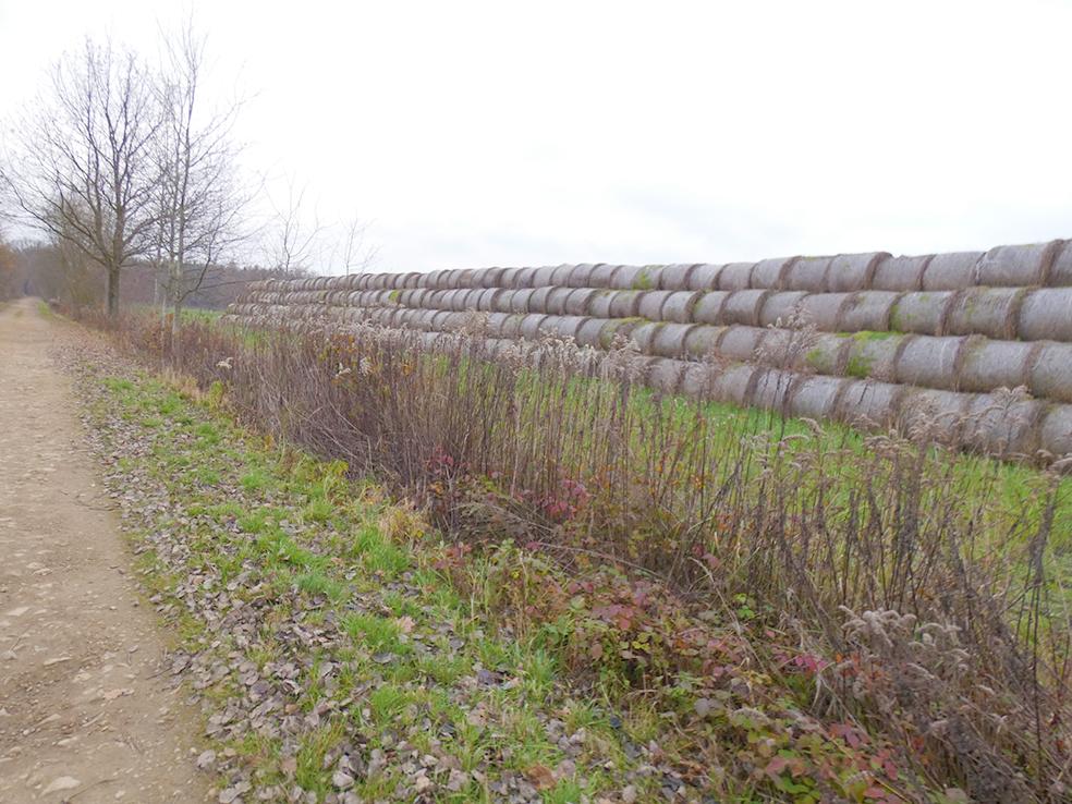 Zajechaliśmy na ulicę Gaikową. Stąd aleją św. Tomasza, a następnie ulicą św. Jana dotarliśmy do ulicy Szerokiej. Ta prowadziła do celu, lecąc Shrekiem, prosto jak w mordę strzelił. Ciekawostki zaczęły się po opuszczeniu zabudowy. Drogę otaczają uprawiane pola uprawne. My zauważyliśmy łan rzepaku ozimego. Pomiędzy nim w roli chwastu wyróżniały się tobołki polne. Dawno nie widziałem takiego skupiska tego gatunku. Zasadniczo nie jest to dobre ziółko. Są wzmianki o stosowaniu go w medycynie ludowej, ale bez wskazania dolegliwości. Jego nasiona, tak jak to czynią w Niemczech, można dodawać do niektórych wędlin. W osi drogi dominują topole osiki, brzozy brodawkowate oraz wierzba wiciowa. Osobliwym akcentem były składowane baloty słomy. Widać w okolicy brak pomysłu na wykorzystanie tej masy biomasy.