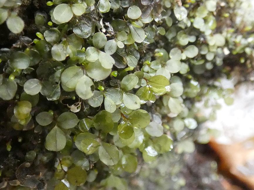 Idąc dalej przez las natrafiliśmy na kilka powalonych drzew opanowanych przez spore porosty. Był złotorost, był obrost wzniesiony, była pustułka pęcherzykowata. Im bliżej źródła tym bardziej ścieżka staje się wąska. Ono samo skrywa się w liściastym młodniku. Teraz jest ono ucywilizowane poprzez ujęcie w betonowy krąg. Osadzonego nad nim wiele lat temu daszka brak. Woda wypływa obok rury i jest odprowadzana szerokim rowem. W betonowym kręgu jej poziom jest nieco wyższy. Jej odcień wskazuje na sporą domieszkę związków żelaza. Tego dnia w okolicy zalegało sporo kłód brzozowych. Zapewne chodzi o to, aby pobierającym tę wodę uszło to na sucho. Na powierzchni wody w rowie widać tęczowe przebłyski. Tak gra światło na woskach pochodzących z rozkładających się liści. Na jednym z palików obok betonowego kręgu wyrasta mech krągłolist albo jak kto woli merzyk kropkowany. Jego liście są nieco purpurowo nabiegłe. Ponadto w okolicy trafił się brodawkowiec czysty. W lesie otaczającym źródło dominuje brzoza omszona. Ma ona bardziej szarą korę w porównianiu z pospolitą brzozą brodawkowatą.