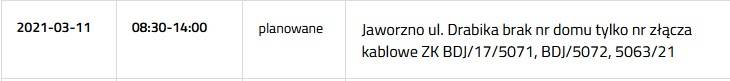 Prądu nie będzie 11 marca przy następującej ulicy: