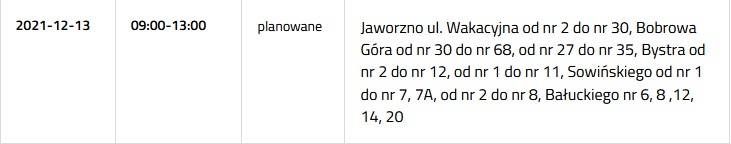Przerwa w dostawie prądu 13 grudnia 2021
