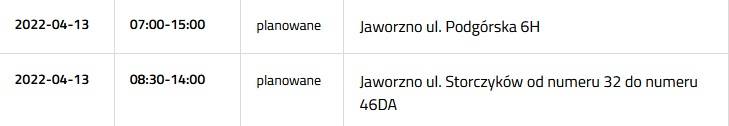 Przerwa w dostawie prądu 13 kwietnia 2022