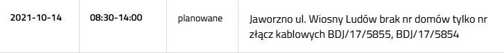 Na stronie Taurona Dystrybucji możemy znaleźć informacje o przerwach w dostawie prądu. Dla Jaworzna przewidziano planowane przerwy w dostarczaniu energii na 14 października.
