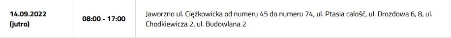 Przerwa w dostawie prądu 14 września 2022