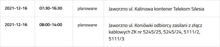 Przerwa w dostawie prądu 16 grudnia 2021