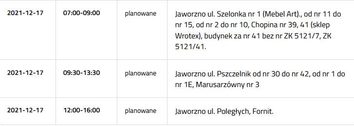 Przerwa w dostawie prądu 17 grudnia 2021
