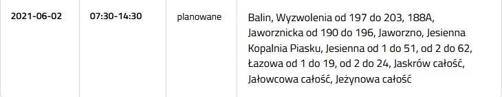 Prądu nie będzie 2 czerwca w następujących lokalizacjach: