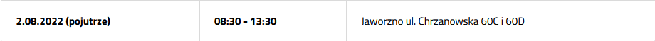 Przerwa w dostawie prądu 2 sierpnia 2022