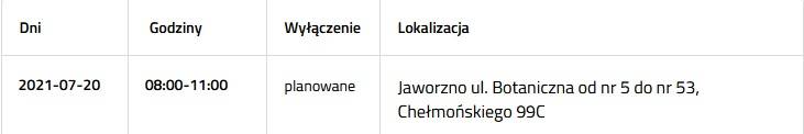Przerwa w dostawie prądu 20 lipca