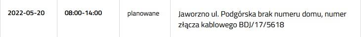 Przerwa w dostawie prądu 20 maja 2022
