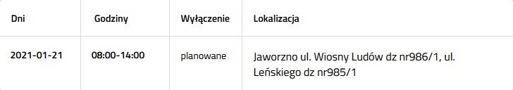 Prądu nie będzie 21 stycznia przy następujących ulicach: