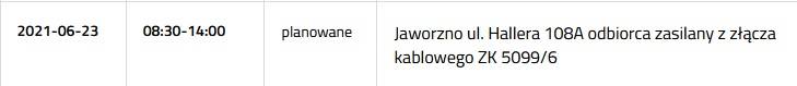 Przerwa w dostawie prądu 23 czerwca
