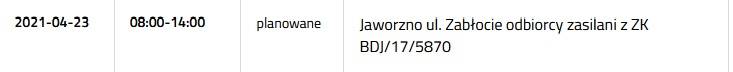 Prądu nie będzie 23 kwietnia przy następujących ulicach: