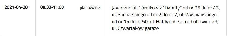 Prądu nie będzie 28 kwietnia przy następujących ulicach: