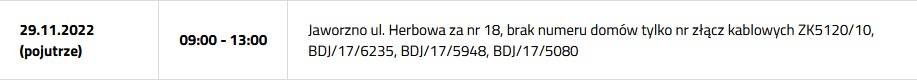 Przerwa w dostawie prądu 29 listopada 2022