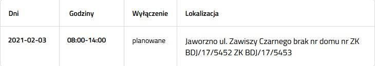 Prądu nie będzie 3 lutego przy następującej ulicy: