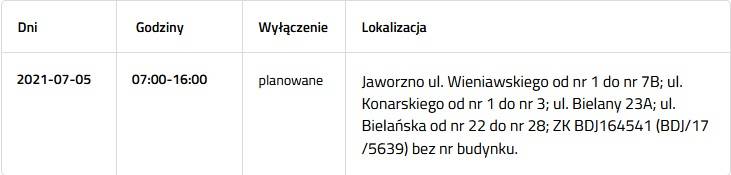 Prądu nie będzie w następujących lokalizacjach: