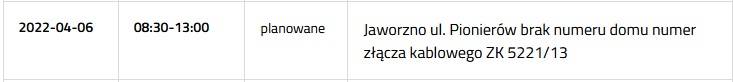 Przerwa w dostawie prądu 6 kwietnia 2022