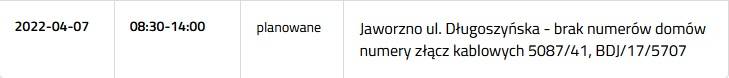 Przerwa w dostawie prądu 7 kwietnia 2022