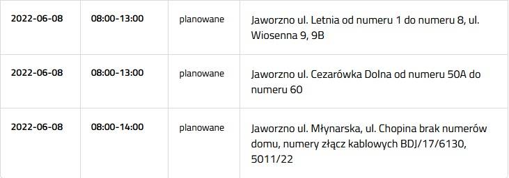 Przerwa w dostawie prądu 8 czerwca 2022