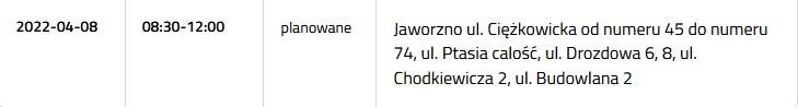 Przerwa w dostawie prądu 8 kwietnia 2022