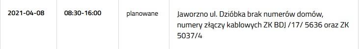 Prądu nie będzie 8 kwietnia przy następujących ulicach: