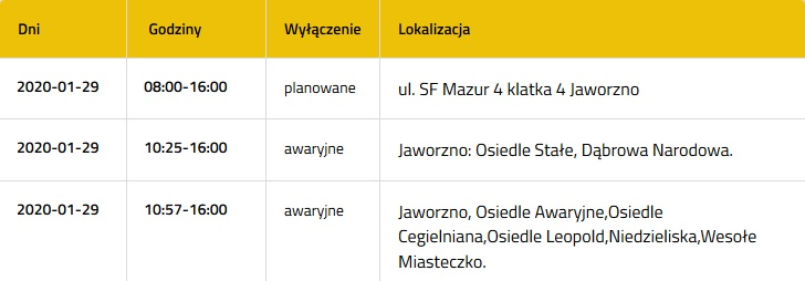 AKTUALIZACJA: Taki komunikat o przerwie w dostawie prądu możemy znaleźć na stronie Taurona.