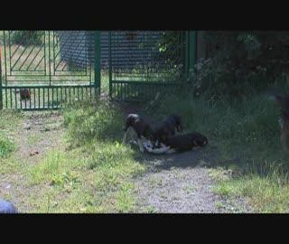 Szukamy domu dla trzech kilkumiesięcznych szczeniąt i ich matki. Właściciel wyjechał z domu około pół roku temu pozostawiając sukę na podwórku. Zwierzęta dokarmiają sąsiedzi.
