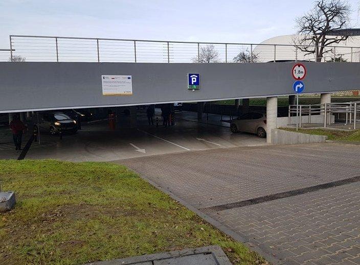 Na parkingu MCIT Jaworzno dostępne jest również punkt ładowania samochodów elektrycznych.