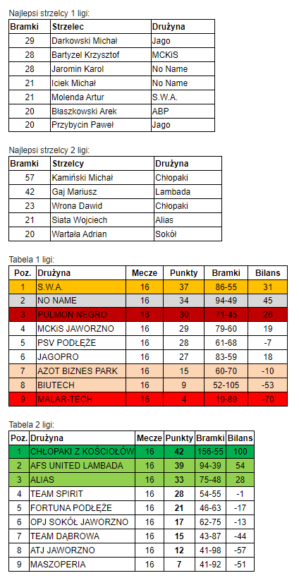 W drugiej lidze bezkonkurencyjni okazali się Chłopaki z kościołów i awansowali bezpośrednio do 1 ligi, tuż za ich plecami AFS United Lambada (awans po barażach) trzecie miejsce dla Alias, który pozostaje wśród drugoligowców.