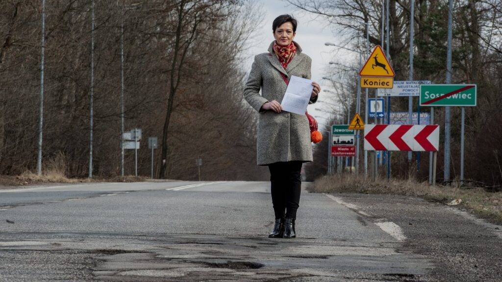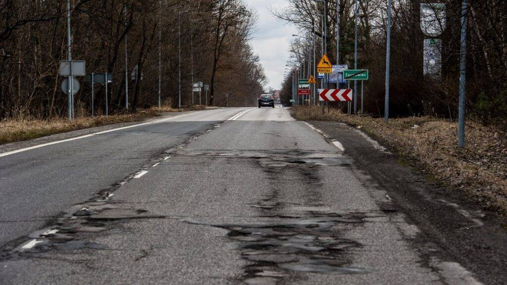 Poruszając się tą drogą w kierunku Jaworzna, kierowcy często wybierają lewy pas, prawy wygląda jak szwajcarski ser. Jak długo potrwa ta sytuacja? Już wkrótce dowiemy się na ile była skuteczna interpelacja radnej.