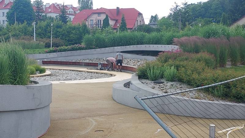 Remont nawierzchni Wodnego Placu Zabaw na jaworznickich plantach trwa od początku maja. Zlecił go w ramach wykonania zastępczego Urząd Miejski. Czas zakończenia prac został przez Wydział Inwestycji Miejskich wydłużony przez wzgląd na warunki pogodowe, które nie były najbardziej sprzyjające i potrwa do końca czerwca. Pozostało więc 13 dni, w których zmieścić się mają wykonawcy zastępczy, czyli firmy Fadro Aleksandra Świątek i AMD Sport Sp. z o.o.