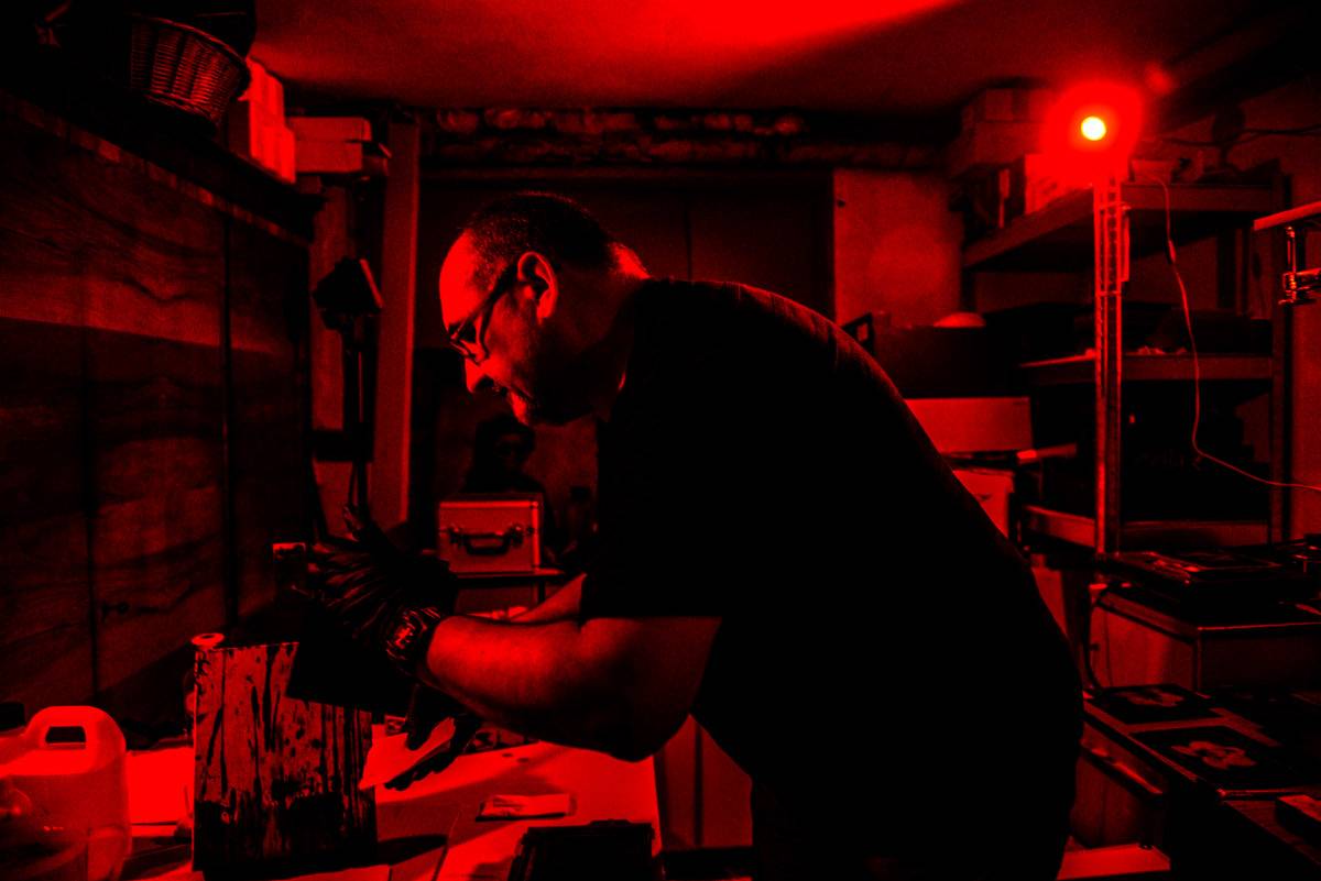 Mirosław Miranowicz wykonuje zdjęcia w technice tzw. mokrego kolodionu. Na zdjęciu w swojej pracowni.