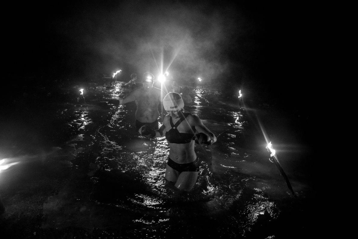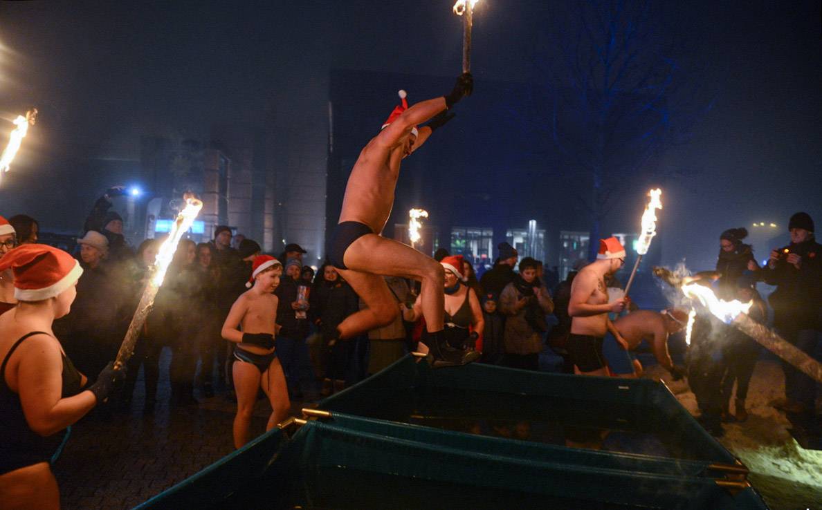 Jaworznickie morsy podczas kąpieli w Sosinie
