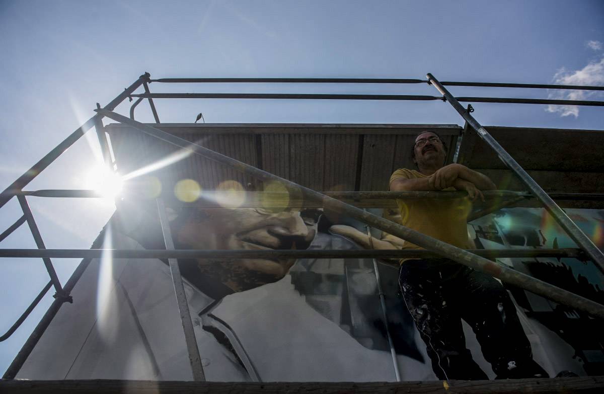 Malarz Jacek Gąsior podczas prac nad muralem przy Zespole Szkół Ponadgimnazjalnych nr 3