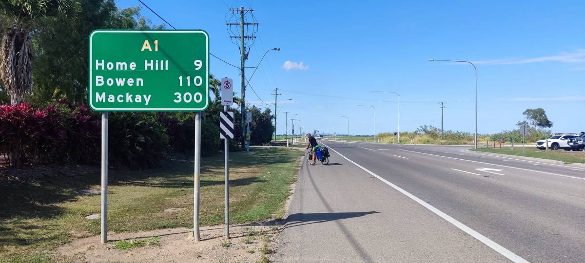 Dziś padł kolejny rekord dł. trasy - 121 km. To nie była jakaś nadzwyczajna nasza mobilizacja, ale efekt pustej drogi. Na całym dystansie tylko jedno miasteczko Home Hill, 2 stacje paliw i stragan, przy którym miejscowy plantator sprzedawał swoje owoce i warzywa