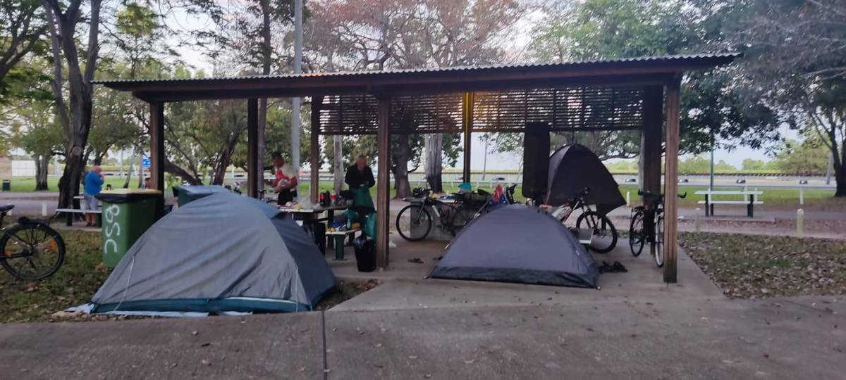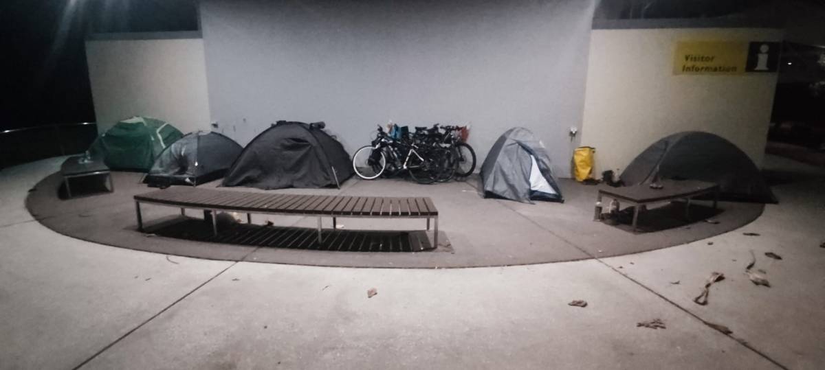 Póki co, szczęście nam sprzyja. To nie do wiary, że po przejechaniu tak długiej trasy w oddzielnych grupach, spotkaliśmy się w rozległym mieście, w sklepie na zakupach. Dalej już razem pojechaliśmy na plażę, gdzie rozbiliśmy obóz (6 namiotów) przy pkt. informacji turystycznej, obok małego amfiteatru. Mieliśmy zadaszenie, prąd i WC. CO do WC, to one są dosłownie na każdym kroku i zawsze bezpłatne.