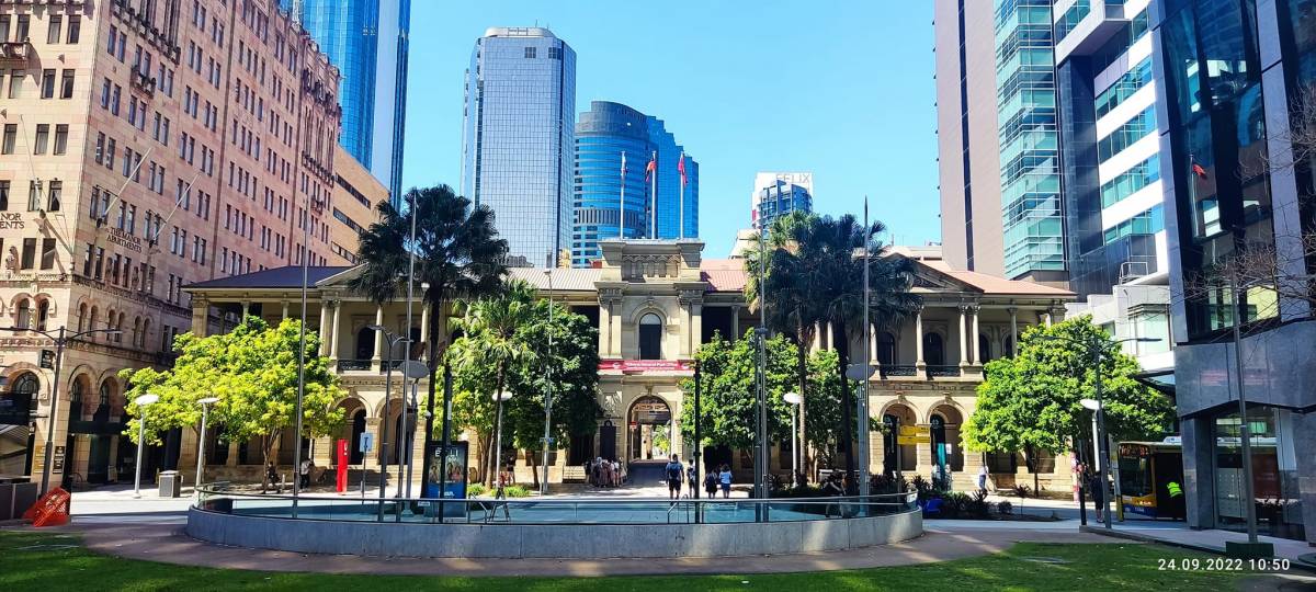 Bagaże zostawiamy w hostelu Brisbane City YHA i ruszamy w miasto. Najpierw jedziemy pod ratusz. W drodze do ogrodu botanicznego (City Botanic Gardens) trafiamy przy Ann Street na zabytkowy, ale wciąż czynny dworzec centralny (Central Station). Naprzeciw dworca plac (ANZAC Square), miejsce pamięci Australijskich i Nowozelandzkich żołnierzy, którzy zginęli w konfliktach zbrojnych (ANZAC to skrót od Australian and New Zealand Army Corps). W dole rosną piękne baobaby, a na drugim końcu stoi poczta główna.
