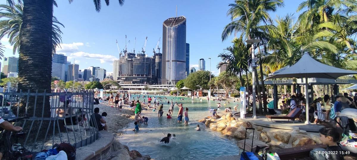 City Botanic Gardens to ogród botaniczny w centrum miasta. Jest rozległy, uspokajający, pełen egzotycznej roślinności. Po jego objeździe, wczesnym popołudniem, wracamy do hostelu, a po drodze robimy zakupy. Całe popołudnie spędzamy na kąpielisku Street Beach znajdującym się na prawym brzegu rzeki Brisbane, oddzielonej od niej promenadą. Przyszły gospodarz igrzysk olimpijskich (2032) niestety nie leży bezpośrednio nad oceanem, ale mimo to posiada plażę. Sztuczne laguny w centrum miasta, zostały zaprojektowane tak, aby można było uciec od miejskiej dżungli. Są wysokie palmy, baseny, biały piasek i jeden z lepszych widoków na wieżowce znajdujące się w centrum.