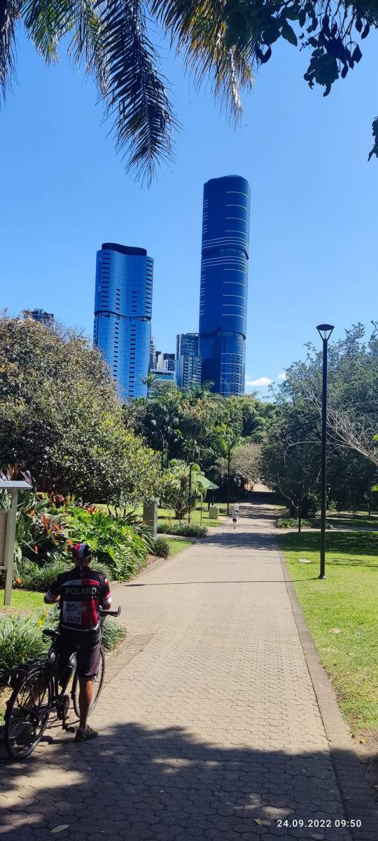 Cały czas od przylotu do Cairns (04.09) jesteśmy w stanie Queensland. Ta część Australii potoczenie nazywana jest Słonecznym Stanem ze względu na subtropikalny klimat i aż 283 słoneczne dni w roku! Na stolicę Brisbane, w której mieszka aż 20% Australijczyków wszyscy mówią “Brissy”. Trzecie miasto Australii, po Sydney i Melbourne, w którym przebywamy od dwóch dni, imponuje ogromem, szczególnie City z "lasem" wieżowców.