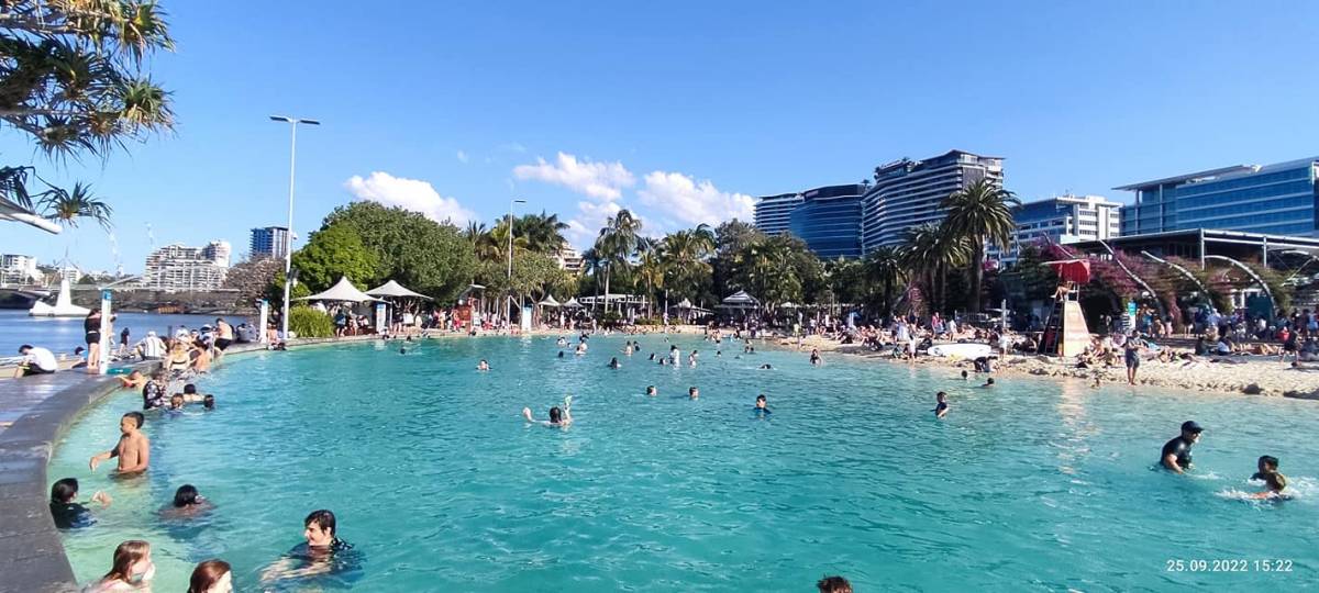 W Brisbane cały czas piękna, słoneczna pogoda z temperaturą powietrza 26-28° C. Cały niedzielny dzień, już w czwórkę, spędzamy na kąpielisku Streets Beach, na prawym brzegu rzeki Brisbane ze wspaniałym widokiem na dzielnice wieżowców City. Dziś jedziemy tam przez Most Kurylpa, znany również jako Most Tank Street, otwarty w 2009 roku. Liczący 470 m długości i 6,5 m szerokości most łączy przecięte przez rzekę południe miasta ze śródmieściem. Most przeznaczony jest dla rowerzystów i pieszych. Wyposażony jest w dwie platformy widokowe i miejsca wypoczynku, jest zaliczany do grupy najpiękniejszych mostów świata. Oświetlony nocą przez setki LED-owych światełek, jest niebanalną atrakcją miasta.