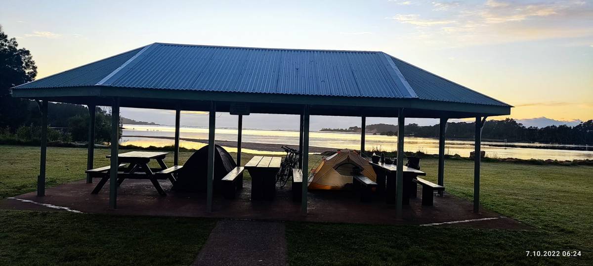 Nie mogę podawać taktyki jazdy mojej pary, bo konkurenci (koledzy) nie śpią i podglądają FB. Na razie jesteśmy na końcu, bo nie mieliśmy szczęścia i całodniowe oczekiwanie na okazję podwozki niewiele dało. Podjechaliśmy zaledwie 40 km do Nambucca Heads. Za to nocleg mamy w przepięknym miejscu, w Bellwood Park nad rzeką Nambucca wpływającą do oceanu. No i to gwieździste niebo - warto było tu przyjechać.