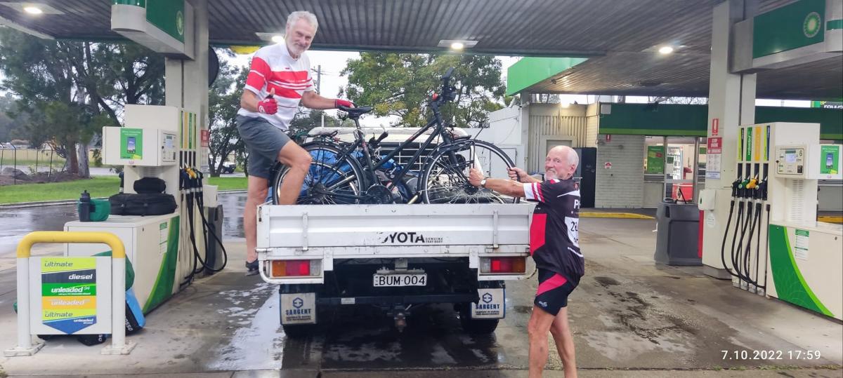 Dzień od rana zapowiadał się pięknie. Była słoneczna pogoda i lekki wiaterek w plecy. Ale z naszego noclegu trzeba było przejechać aż 80 km, by trafić na pierwszą stację paliw przy drodze, w Kempsey South Service Centre. Tu namierzyliśmy pojazd, który zawiózł nas do kolejnej stacji paliw, 10 km przed Newcastle. 258 km przejechaliśmy w 2,5 godziny. I gdy wygrana była w zasięgu ręki zaczął padać deszcz, który z czasem przeszedł w ulewę. 3,5 godziny czekaliśmy na ustanie deszczu i nasza wygrana zawisła na włosku, bo koledzy mogli nas jeszcze wyprzedzić. Skończyło się jednak dla nas szczęśliwie.