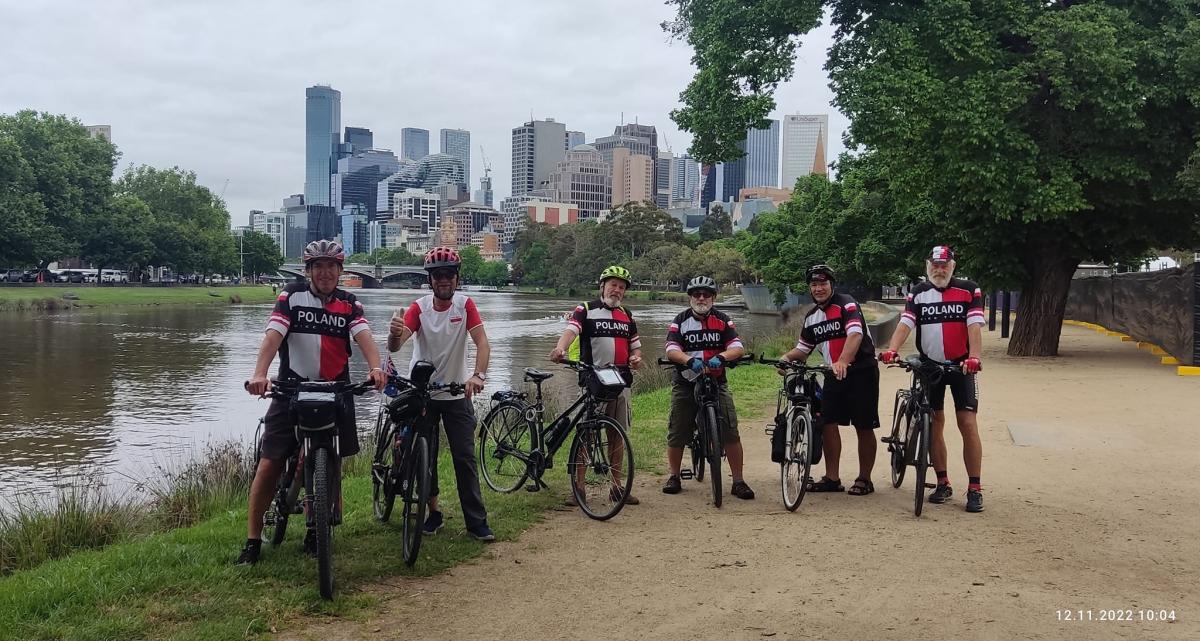 To był dla nas bardzo miły dzień. Na głównym placu Melbourne odbył się Polski Polski Festiwal na Federation Square. Impreza organizowana jest od 2004 roku, ale teraz po 2-letniej przerwie spowodowanej światową pandemią koronawirusa. Odświętnie ubrani w koszulki rowerowe i czapeczki w barwach narodowych udaliśmy się na festiwal rowerami. Oczywiście wzbudzaliśmy spore zainteresowanie swoją obecnością. Ludzie podchodzili do nas, wypytywali o szczegóły naszego pobytu, robili wspólne zdjęcia, opowiadali o swoim życiu na obczyźnie. Nasz pobyt na polskim święcie nie uszedł uwadze polonijnych mediów. Wywiad z nami przeprowadziło radio SBS oraz Bumerang Polski - niezależny magazyn internetowy Polaków w Australii. Z naczelną dwutygodnika Tygodnik Polski (sic!) Magdaleną Jaskulską umówiliśmy się na większy wywiad.
